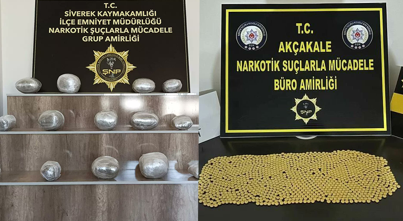 Baskınlar sonucunda, Siverek ilçesinde 14 paket halinde 9 kilogram Skunk ele geçirilirken, Akçakale ilçesinde ise bin 305 adet Captagon hap yakalandı.