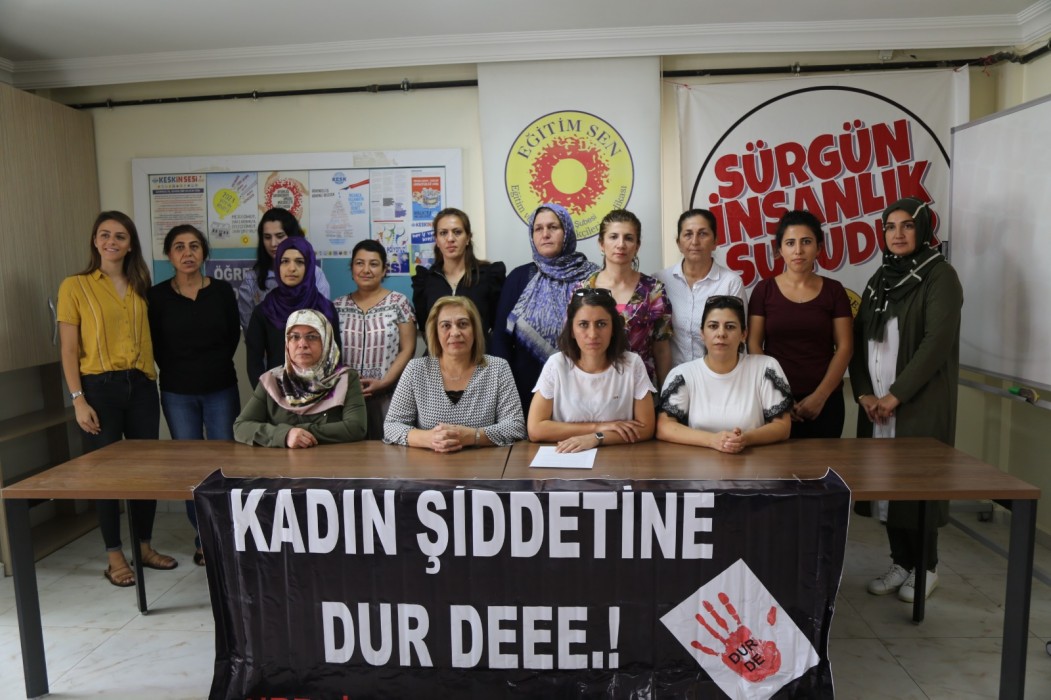 Eğitim-Sen Şube Binası'nda bir araya gelen CHP, HDP, KESK, Kadın Yaşam Evi, Ekoloji Derneği, İHD, Urfa Barosu ve TMMOB Üyeler,, "Kadına şiddete dur!" dedi.