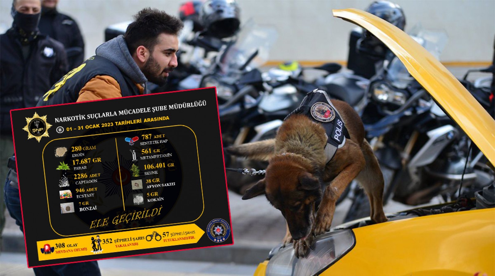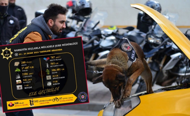 paylaşılan görsele göre, narkotik ekiplerinin 01 - 31 Ocak