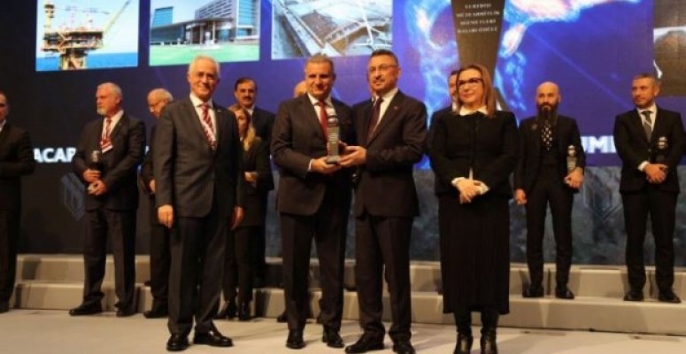 Törende ödüllendirilen Urfa firmasının ödülünü Gürbağ Grup Yönetim Kurulu Başkanı Halil Bağıban, Cumhurbaşkanı Yardımcısı Fuat Oktay’dan aldı.