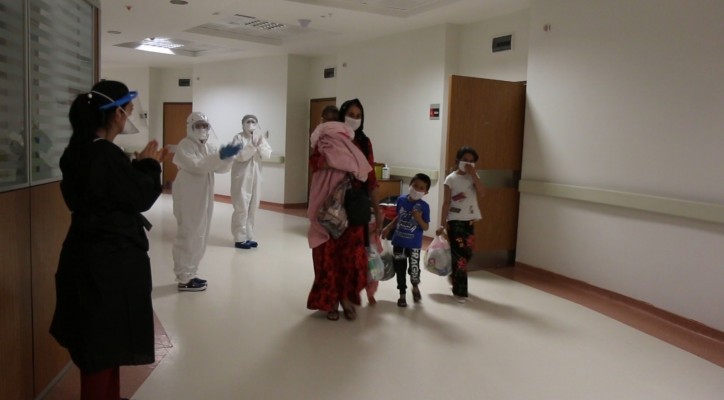 Aile, alkışlar arasında taburcu edilirken, Şanlıurfa'daki en küçük koronavirüs hastası olan Semanur bebeğin annesi, sağlık çalışanlarına teşekkür etti.