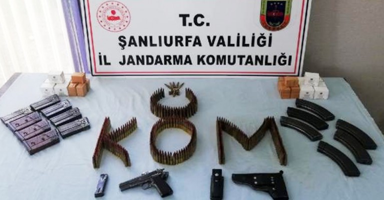 Düzenlenen baskında uzun namlulu tüfeklere ait 1500 mermi, 14 uzun namlulu tüfek şarjörü ve bir ruhsatsız tabanca ile 29 mermi ele geçirildi.
