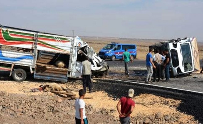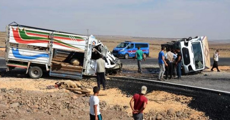 Siverek-Adıyaman arasındaki karayolunda meydana gelen kazada, kasasında koyunlar bulunan 63 N 0206 plakalı kamyonet ile 34 SB 5120 plakalı kamyonet çarpıştı.