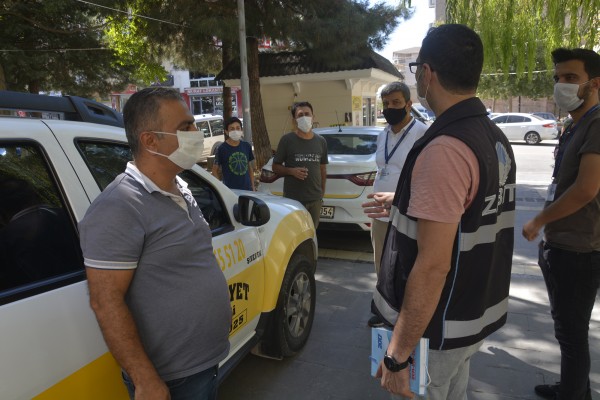 Şanlıurfa’nın Siverek ilçesinde çalışmalarını yürüten zabıta ekipleri, halkın en çok temas ettiği alanlar içerisinde bulunan toplu taşıma araçları ve taksilerde denetimler yaparak sürücülere sosyal mesafe ve meskenin önemini anlattı.