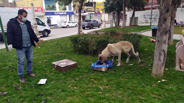 Şanlıurfa’nın Siverek ilçesinde muhtelif cadde, sokak ve parklarına Çevre Koruma ve Kontrol ekiplerince yem ve mama bırakıldı, esnaftan temin edilen etlerin de dağıtımı yapılarak sokak hayvanları doyuruldu.