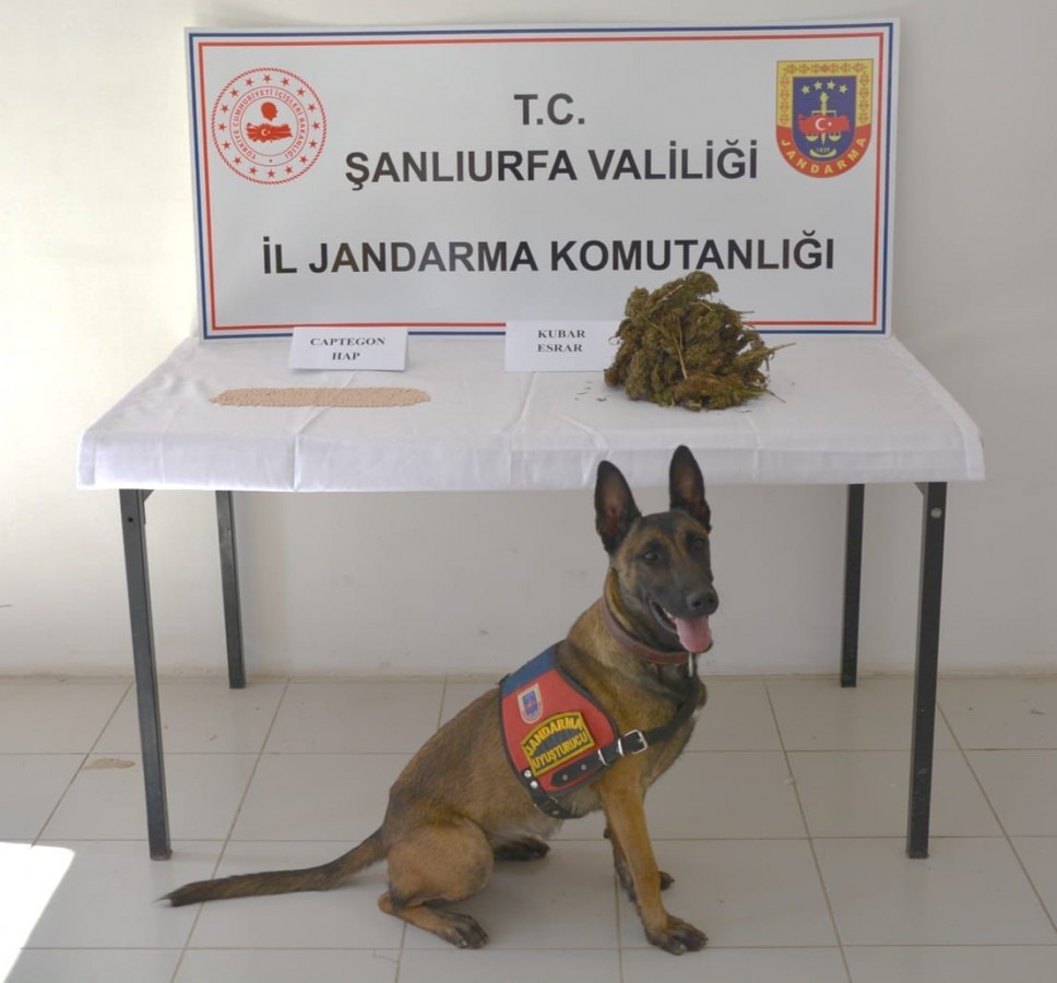 belli miktarda esrar ve çok sayıda captagon uyuşturucu hap ele geçirilmiştir.