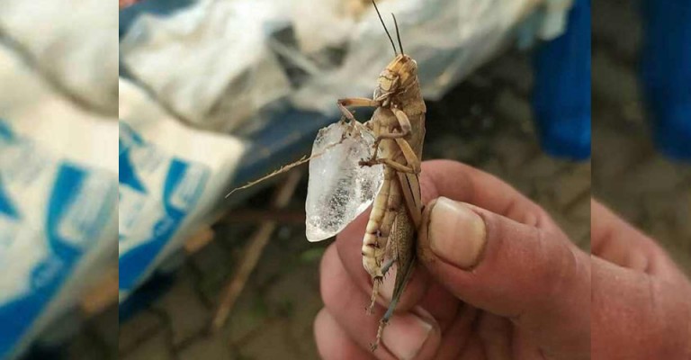 Bir pazar yerinde görüntülenen bir çekirge de hayvanların sıcaklardan nasıl bunaldığına adeta örnek oldu. Bir buz kalıbına yapışan çekirge esnaf tarafından fark edildi ve o anlar fotoğraf ile ölümsüzleştirildi. "Çekirge, Urfa sıcağında buza sarılmış" yorumu yapıldı.