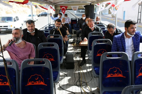 Koronavirüsü tedbirleri kapsamında Ramazan Bayramında başlatılan sokağa çıkma kısıtlamasında, vatandaşlara moral vermek amacıyla Şanlıurfa Büyükşehir Belediyesi Urfa Ahengi ekibi tarafından Turizm aracı ile Şanlıurfalılara canlı tasavvuf konseri verildi.