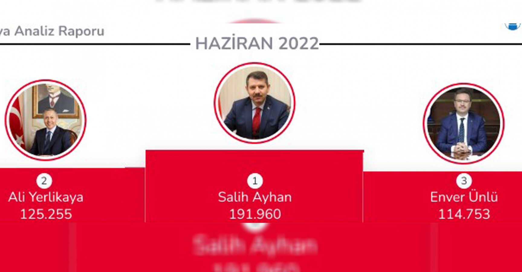 Teleskop APP'nin yapay zeka destekli sosyal medya, haber ve internet takip uygulaması kapsamında 2022 yılı Haziran Ayı Valiler ve Valiliklerin Sosyal Medya Performans Raporu yayınlandı. Rapora göre 81 il valisi arasında Şanlıurfa Valisi Salih Ayhan tüm sosyal medya hesapları için toplamda 191 bin 960 etkileşim alarak İstanbul Valisi Ali Yerlikaya'yı da gerisinde bırakarak birinci oldu. Vali Ayhan'ı 125 bin 255 etkileşim ile İstanbul Valisi Yerlikaya, Vali Yerlikaya'yı ise 114 bin 753 etkileşim ile Giresun Valisi Enver Ünlü takip etti.