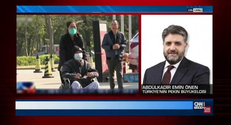 Büyükelçi Önen, Türkiye’nin de bir an evvel bu musibetten kurtulması için vatandaşların aldığı tedbirlere harfiyen uyması gerektiğini, evde kalmanın bu iştin kurtulmamız anlamına geldiğini söyledi. Önen, Çin'de koronavirüs nedeniyle karantina altındaki Türklerin tahliye kararını ve yol haritasını CNN TÜRK canlı yayınında anlattı.