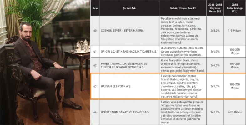 2012-2015 yılları arasında TOBB tarafından yüzde 368,3 büyüme ile “Türkiye'nin En Hızlı Büyüyen 100 Şirketi” listesine girmeyi başaran Hassan Elektrik A.Ş. şirketi, bu büyük başarıdan hemen sonra 2016-2018 yılları arasında yine TOBB tarafından yüzde 261,0 büyüme oranı ile “Türkiye'nin En Hızlı Büyüyen 100 Şirketi” listesine 63. sıradan 2. defa girerek büyük bir başarı elde etti.