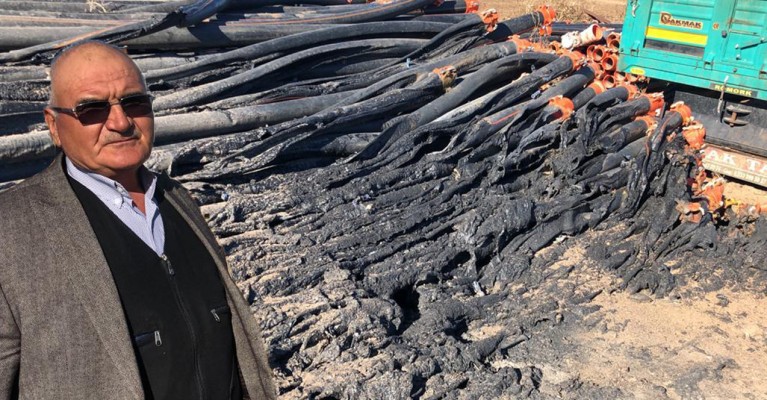 Kuzey Irak'ta tarım ile uğraşan iş insanı Şanlıurfalı Ali Caz’a ait işletme silahlı saldırıya uğradı ve ardından kundaklandı. Faillerin yakalanmasını isteyen iş insanı Caz zararının 80 bin dolar civarında olduğunu belirtti.
