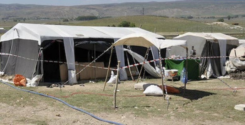 Jandarma ekiplerinin çadırın etrafında emniyet şeridi çektiği görüldü.