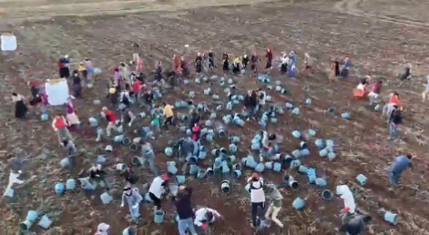 Şanlıurfa’nın Hilvan ilçesinden Sivas’ın Kangal ilçesine giden mevsimlik tarım işçileri de kışlık patates hasadını tamamladı. Hilvanlı işçiler tamamlanan hasadın ardından sezonu bitirmelerini eğlenceli hale getirdi. Üniversitede mezuniyet töreninde kep atan öğrencileri örnek alan tarım işçilerinin kovalarını havaya fırlattığı o anlar sosyal medyada gündem oldu.