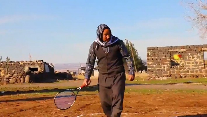 Şanlıurfa'nın Viranşehir ilçesine bağlı Sarıbal Mahallesinde vatandaşlar toprak kortta tenis oynuyor.