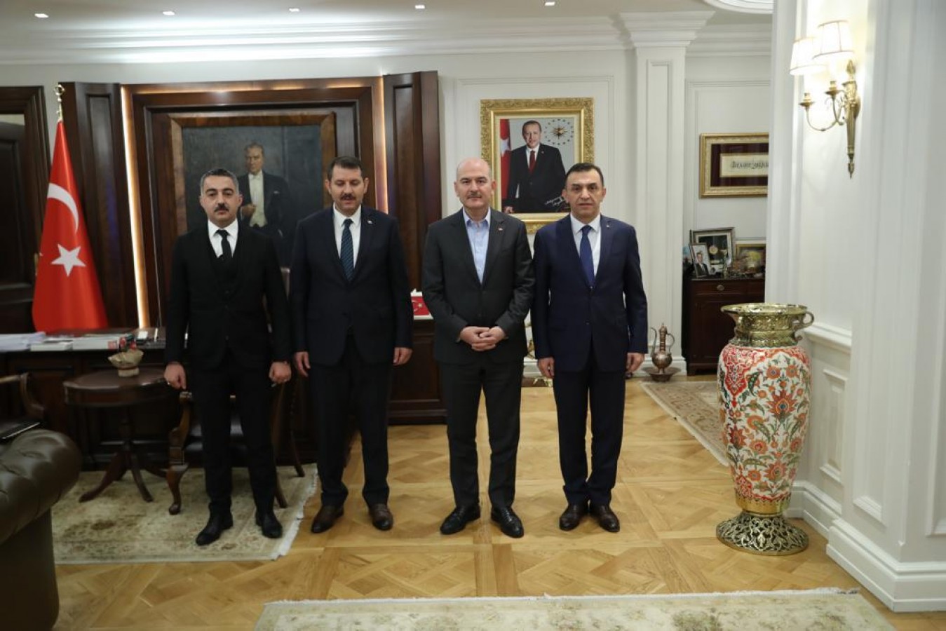 Şanlıurfa Valisi Salih Ayhan beraberinde İl Emniyet Müdürü Mehmet Murat Ulucan ile İçişleri Bakanı Süleyman Soylu'yu makamında ziyaret etti. Ziyarette Bakan Soylu'ya Şanlıurfa’da hayata geçirilecek projeler iletildi.