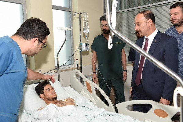 Şanlıurfa Valisi Abdullah Erin, Suriye tarafından PKK/PYD/YPG teröristlerince Suruç Çaykara mahallesine atılan mühimmatların patlaması sonucu hayatını kaybeden vatandaşların ailelerine taziye ziyaretinde bulunduktan sonra, Suruç Devlet Hastanesi’nde tedavisi devam eden yaralıları ziyaret etti.
