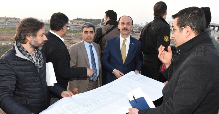Belediye ziyaretinin ardından Ceylanpınar’ın karşısında bulunan Resulayn’a geçen Vali Erin, tadilat çalışması devam eden kamu binalarında incelemelerde bulundu. Resulayn Yerel Polisi (Şorta) hizmet binası, belediye binası ve Jandarma için yapımına başlanan bina inşaat alanına giden Vali Erin, uygulanan projeler hakkında yetkililerden bilgi aldı.