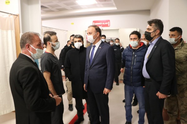Olayın yaşandığı gece yaralı polisi tedavi gördüğü hastanede ziyaret ederek geçmiş olsun dileklerini ileten Vali Erin, sağlık durumu hakkında doktorlardan bilgi aldı.