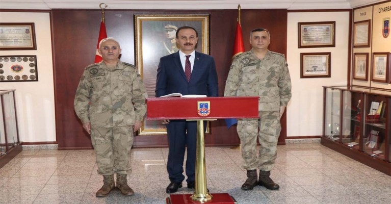 Diyarbakır Jandarma Bölge Komutanı Tümgeneral Fuat Güney tarafından karşılanan Vali Erin, Komutanlık Şeref Defterini imzaladıktan sonra Tümgeneral Güney ile makamda bir görüşme yaptı.