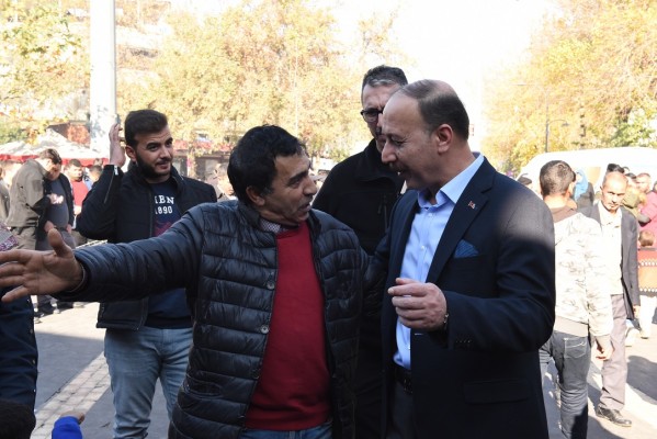Vatandaşların sorun, talep ve beklentilerini dinleyen Şanlıurfa Valisi Abdullah Erin, aralarında sıkı bir dostluk bağı gelişen çarşı esnafı ile uzun uzun muhabbet etti.