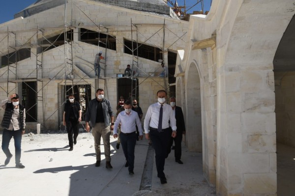 Viranşehir Kaymakamı Ömer Dereci ile birlikte inşaat alanına giden Vali Erin, geçmiş yıllarda yapılan çalışmalarla çehresi değişen Eyüpnebi Ziyaretgahında devam eden cami inşaatı ve diğer kısımlarda yapılan çalışmalar hakkında bilgi aldı.