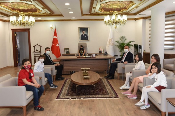 Makamını devrettiği Elif Ceren Başaranoğlu ve arkadaşlarını makamında ağırlayan Vali Abdullah Erin, tablet bilgisayar hediye ettiği çocukları tebrik ederek, hatıra fotoğrafı çektirdi.