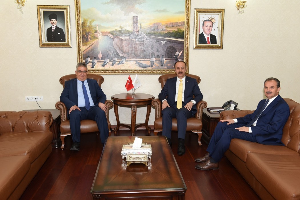 Şanlıurfa’ya gelen Adıyaman Valisi Aykut Pekmez ve Adıyaman Belediye Başkanı Süleyman Kılıç, Şanlıurfa Valiliğini ziyaret etti.