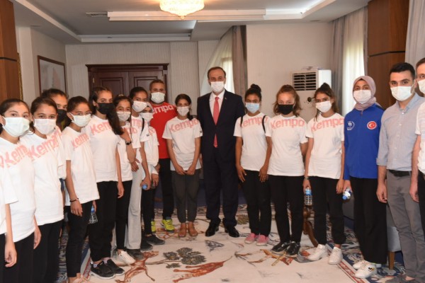 Başarılı sporcuları valilik şeref salonunda kabul ederek mutluluklarını paylaşan Vali Erin, spora olan ilgilerini azim ve kararlılıkla sürdürerek başarılar elde eden takım oyuncularını ve öğretmenlerini tebrik etti. Vali Erin, çocuklara çeşitli hediyeler verdi.