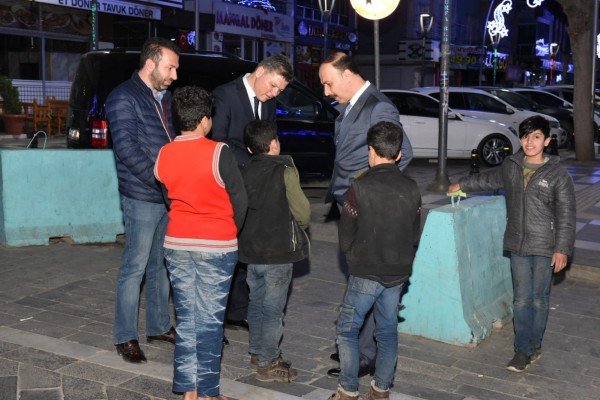 İşyerlerini kapatmak üzere temizlik yapan esnafla sohbet eden Vali Erin, halen sokakta bulunan bir grup çocuğa rastlayınca yanlarına gitti. Çocuklara bu saatte sokakta ne yaptıklarını soran Vali Erin, bir süre onlarla birlikte yürüyerek sohbet etti. Geç saatlere kadar dışarıda kalmalarının çok sakıncalı olduğunu söylediği çocuklar, Vali Erin’e ne cevap vereceklerini bilemedi.