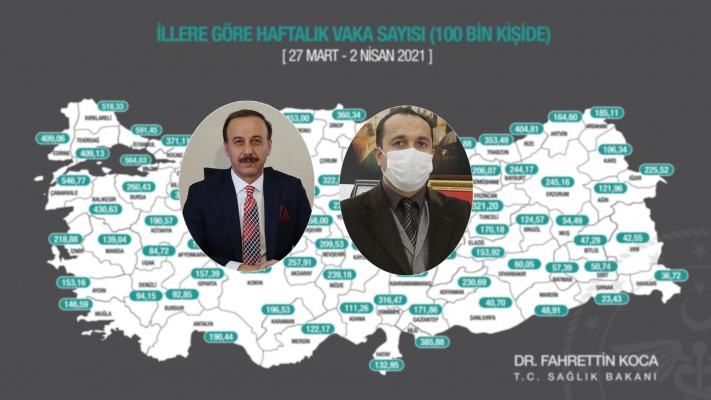 Sağlık Bakanı Fahrettin Koca, 27 Mart-2 Nisan arasında illere göre her 100 bin kişide görülen koronavirüs vaka sayılarını açıkladı. Koca, Twitter hesabından yaptığı paylaşımda, 27 Mart-2 Nisan döneminde il bazında 100 bin nüfusa karşılık gelen haftalık Covid-19 vaka sayılarına yer vererek, "Durumu lehimize çevirmek elimizde." ifadesini kullandı.