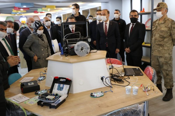Viranşehir Şehit Seyyit Kadir Denel İmam Hatip Ortaokulunda oluşturulan STEM Akademisini ziyaret ederek, uygulanacak bilim ve teknoloji programları hakkında bilgi alan Vali Erin, burada uygulanan kodlama eğitimleri, drone, 3D yazıcı gibi çalışmaları yakından inceledi.