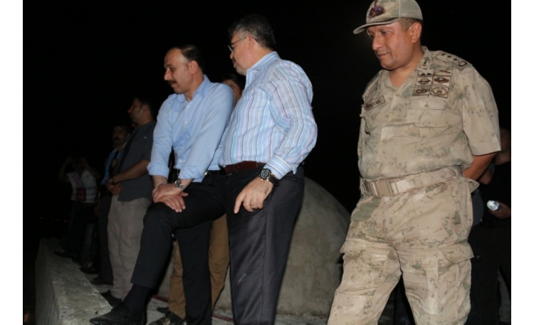 Bölgeye İl Emniyet Müdürü Veysal Tipioğlu, Jandarma Alay Komutan Vekili Albay Mehmet Pehlivan ile birlikte giden Vali Erin, buradaki çalışmaları takip etti.