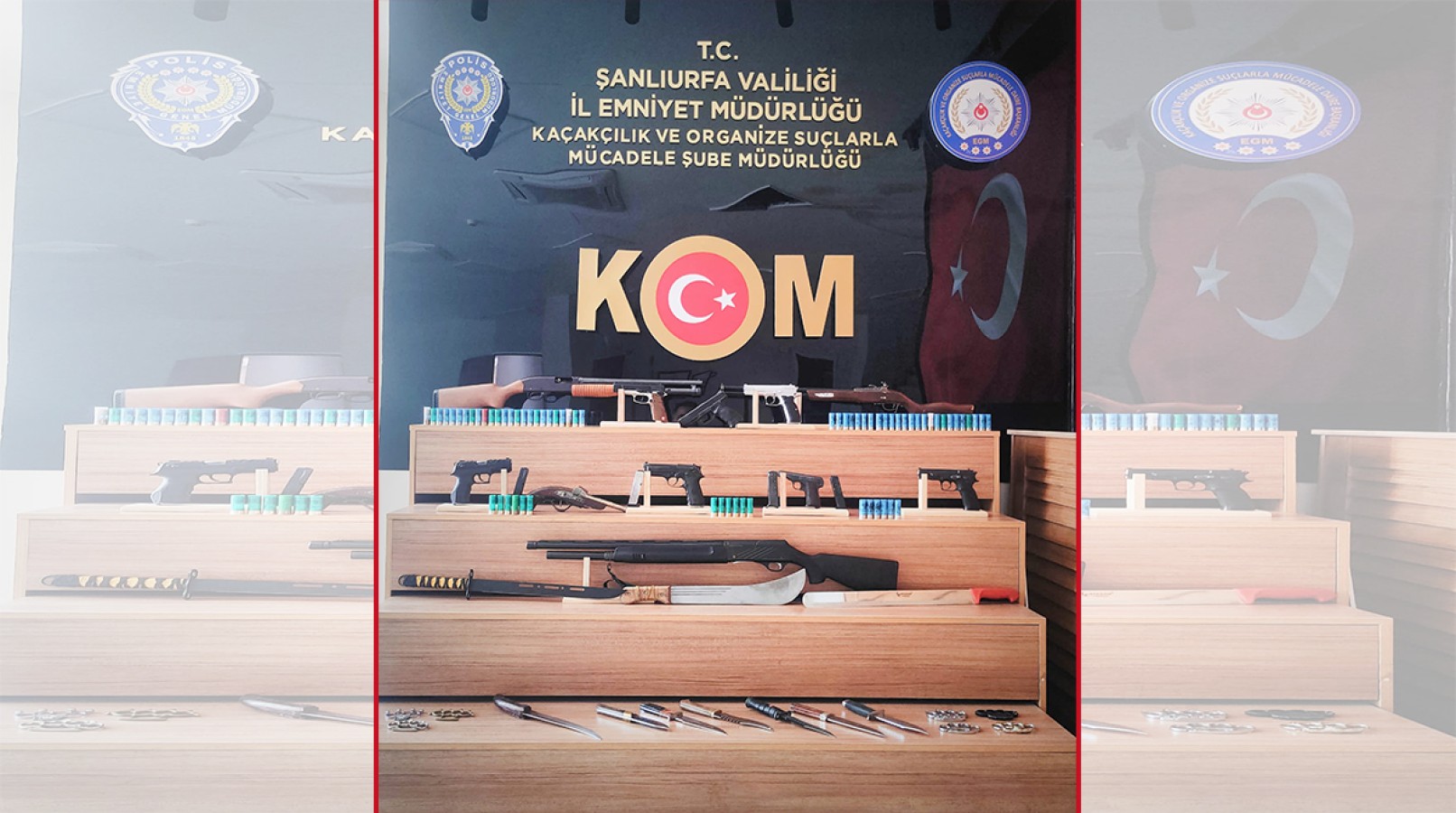 Şüphelilerin adreslerinde yapılan aramalarda 8 farklı çaplarda tabanca, 5 pompalı av tüfeği, 8 şarjör, 10 farklı uzunluklarda kesici alet, 7 muşta, 82 av tüfeği fişeği ve 34 fişek ele geçirildi.