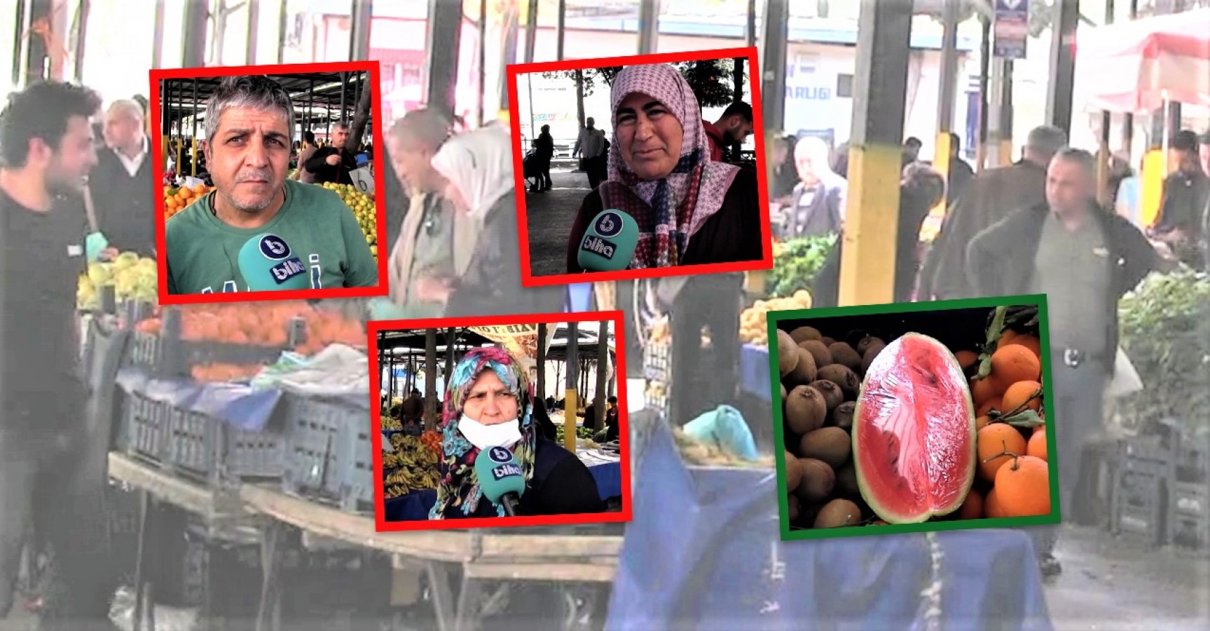 Pazara bakar mısınız portakal ve elmadan başka bir şey yok. Esnafın bir çoğu tezgah açmamış. Biber ve domatesi bu fiyatlardan nasıl alalım. Pazarcı da artık tezgah açmıyor. Onlarda halden malzeme alamıyor. Karpuz şuan pazarda dilimle satılıyor yarın onu da alamayacağız.“ diye konuştu.