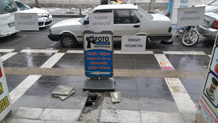 "Yer Tekel caddesi Şoförler derneği önü... Dernek binasının önündeki kamunun kullandığı kaldırımın altının yaklaşık 40-45 yıl öncesinde kazılıp bodrum olarak kullanıldığı kaldırım çökmeye başlayınca ortaya çıktı...