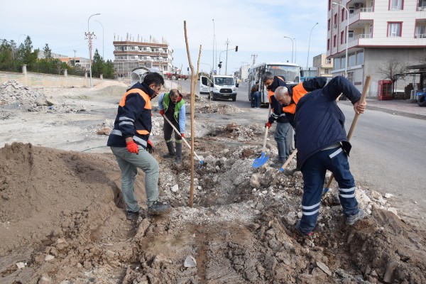 ‘Daha yeşil bir Viranşehir’ sloganı ile başlatılan ağaçlandırma çalışmaları kapsamında ilçenin farklı noktalarındaki caddelerin orta refüjlerine yaklaşık 500 ağacın dikileceği belirtildi.