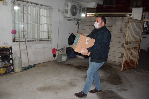 Viranşehir Belediye Başkanı Salih Ekinci, 65 yaş üstü ve kronik rahatsızlığı bulunan vatandaşların evlerine giderek gıda kolisi, maske ve kolonya dağıttı.