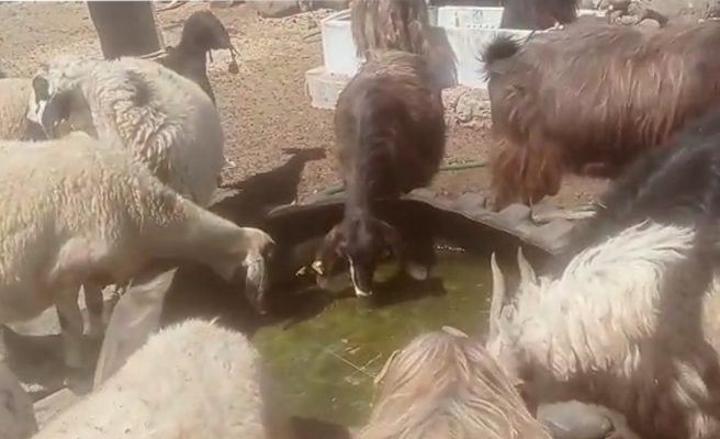 Videoda küçükbaş hayvanların içerisinde çok az miktarda su