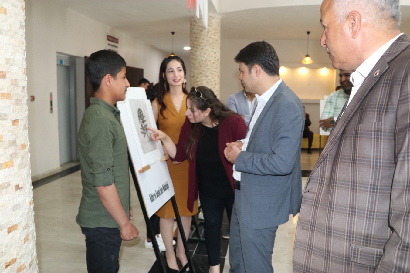 Sanatlar Öğretmeni Derya Işık, sergiye katılan protokol üyelerine