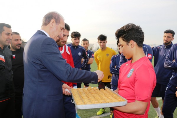 Akçakale İlçe Belediye Başkanı Mehmet Yalçınkaya, Akçakale BelediyeSporlu futbolcuları yaptıkları antrenman sahasında ziyaret ederek, futbolculara moral verdi.