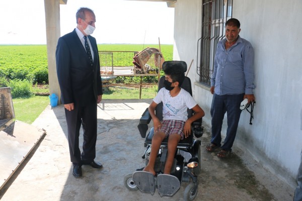 Akçakale Belediye Başkanı Yalçınkaya, Aşağıderen kırsal mahallesinde yaşamını sürdüren 13 yaşındaki İbrahim Ceylan'ı, Meclis Başkan Vekili Şerif Bozkurt ve Meclis Üyesi İsa Altuntaş ile birlikte evinde ziyaret ederek, akülü tekerlekli sandalyesini teslim etti.