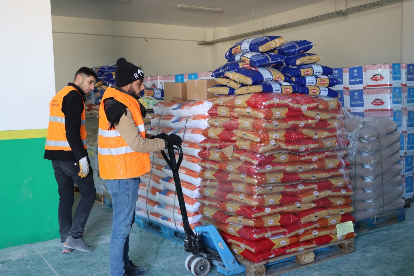 Şanlıurfa Büyükşehir Belediyesi lojistik merkezinde toplanan yardımlar burada belediye personelleri ve Gençlik Meclisi Gönüllüleri tarafından istifleniyor. Lojistik merkezinde istiflenen yardım kolileri, güvenli alanlarda barınan vatandaşlara ulaştırılıyor.