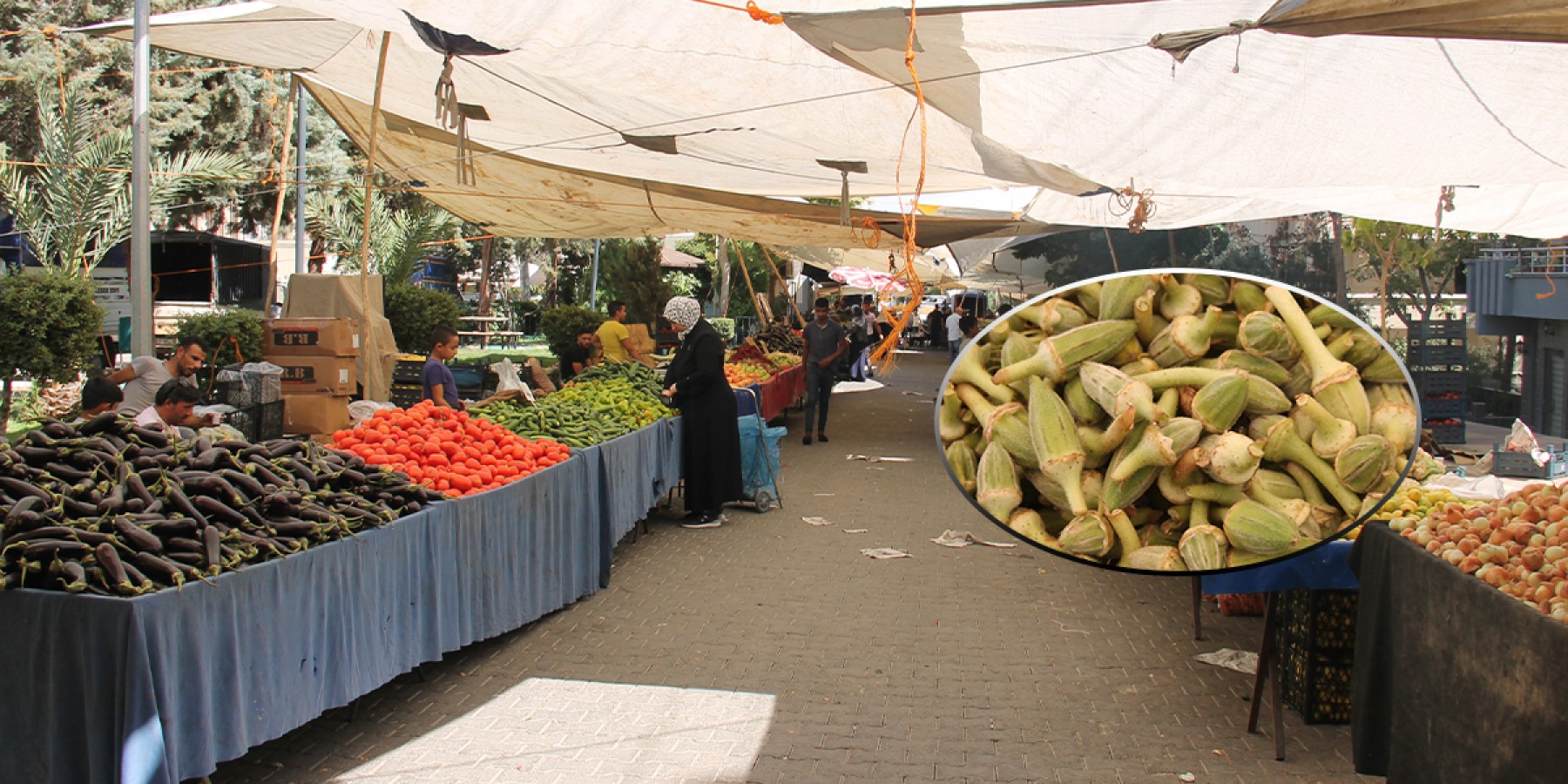 liradan tezgâhlarda yer bulduğu pazarda, vatandaşlar bamyanın fiyatını sormakla