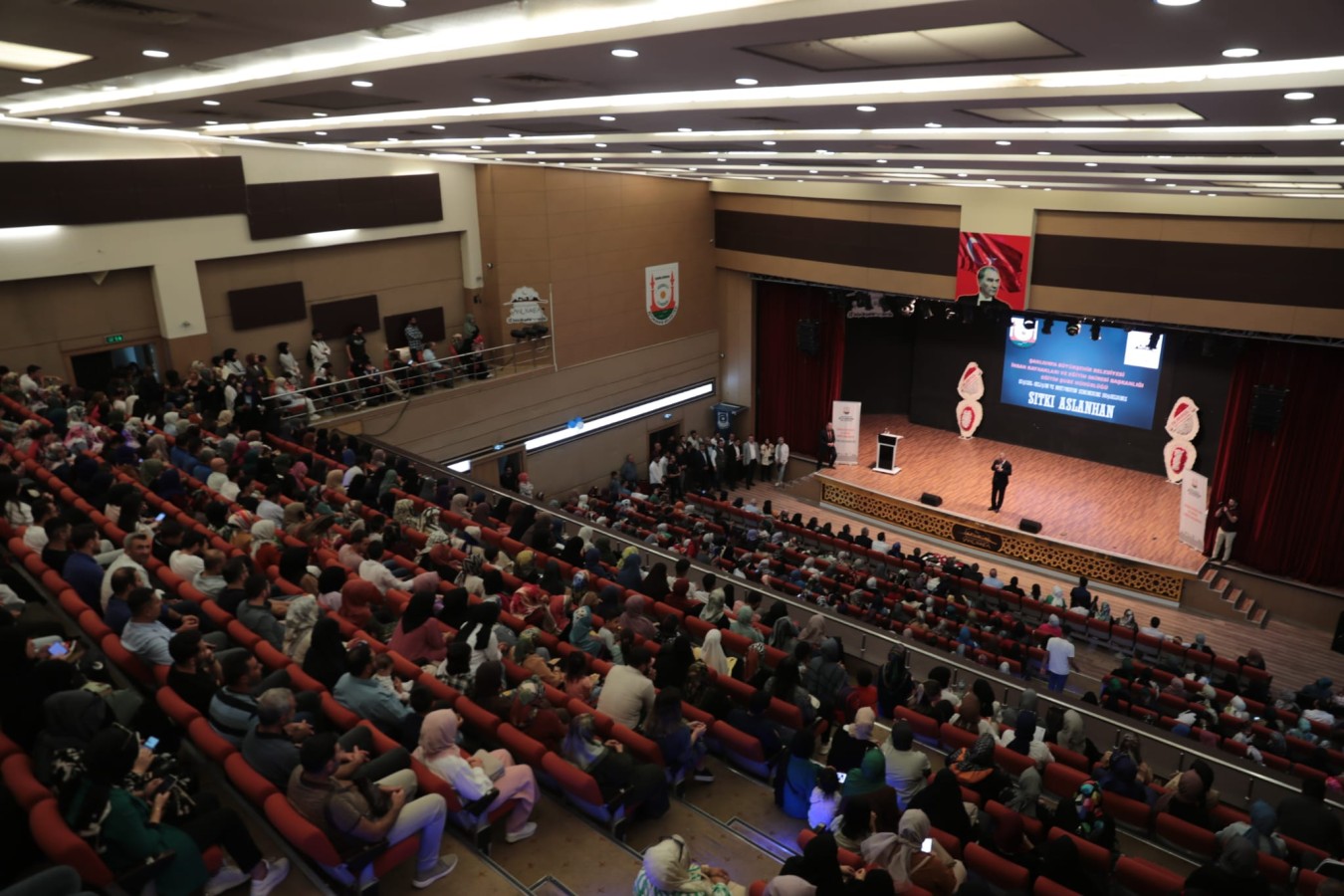 Beyazgül’ün ardından sahneye çıkan Eğitimci Yazar Sıtkı Aslanhan salonu