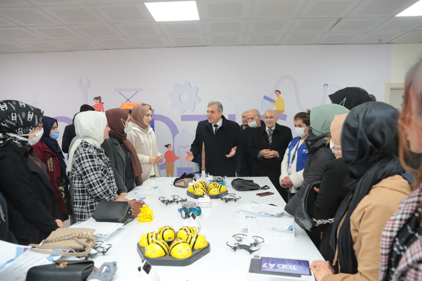 Açılış programında Robotik kodlama ve mentörlük kursunda başarılı olan 110 öğrenciye tablet verilirken, 50 engelliye manuel ve akülü sandalye hediye edildi. Beyazgül, daha sonra Robotik kodlama ve çeşitli kursların düzenlendiği sınıfları gezdi. Kursiyerler burada yaptıkları çalışmalarla ilgili Beyazgül’e bilgi verdi.