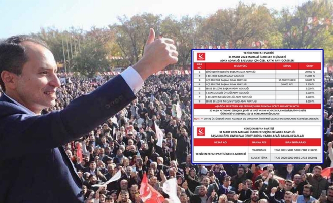 REFAH PARTİSİ BAŞVURU ÜCRETİNİ AÇIKLADI
