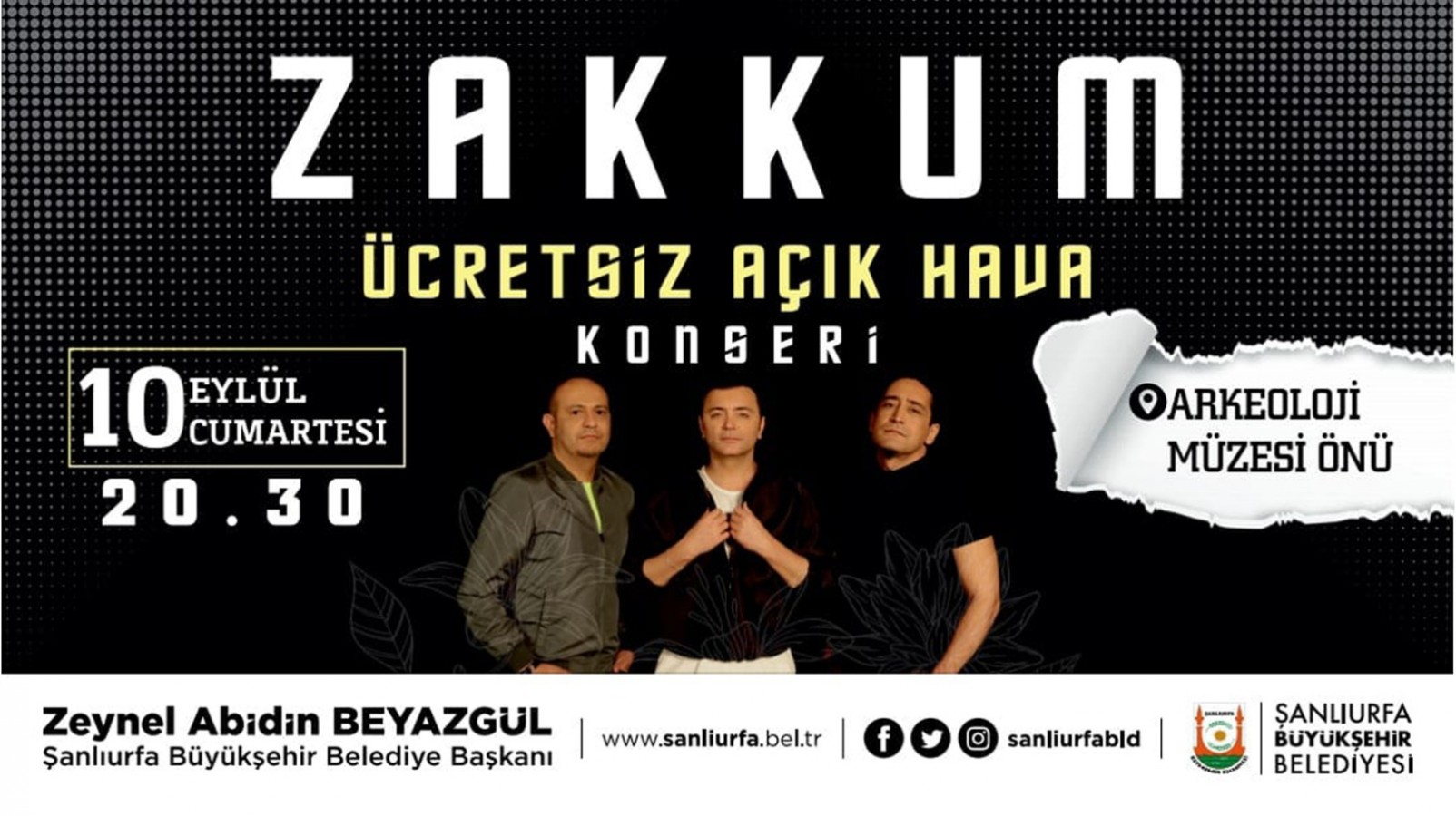 ŞANLIURFA- Kültür ve sanat faaliyetleri kapsamında yaz konserleri düzenleyen Şanlıurfa Büyükşehir Belediyesi, Kültür ve Turizm Daire Başkanlığı koordinesinde ünlü müzik grubu Zakkum’u kentteki müzikseverlerle buluşturacak.
