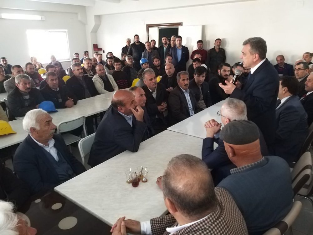 karşılanan AK Parti Şanlıurfa Büyükşehir Belediye Başkan Adayı Av. Zeynel Abidin Beyazgül, işçilerle